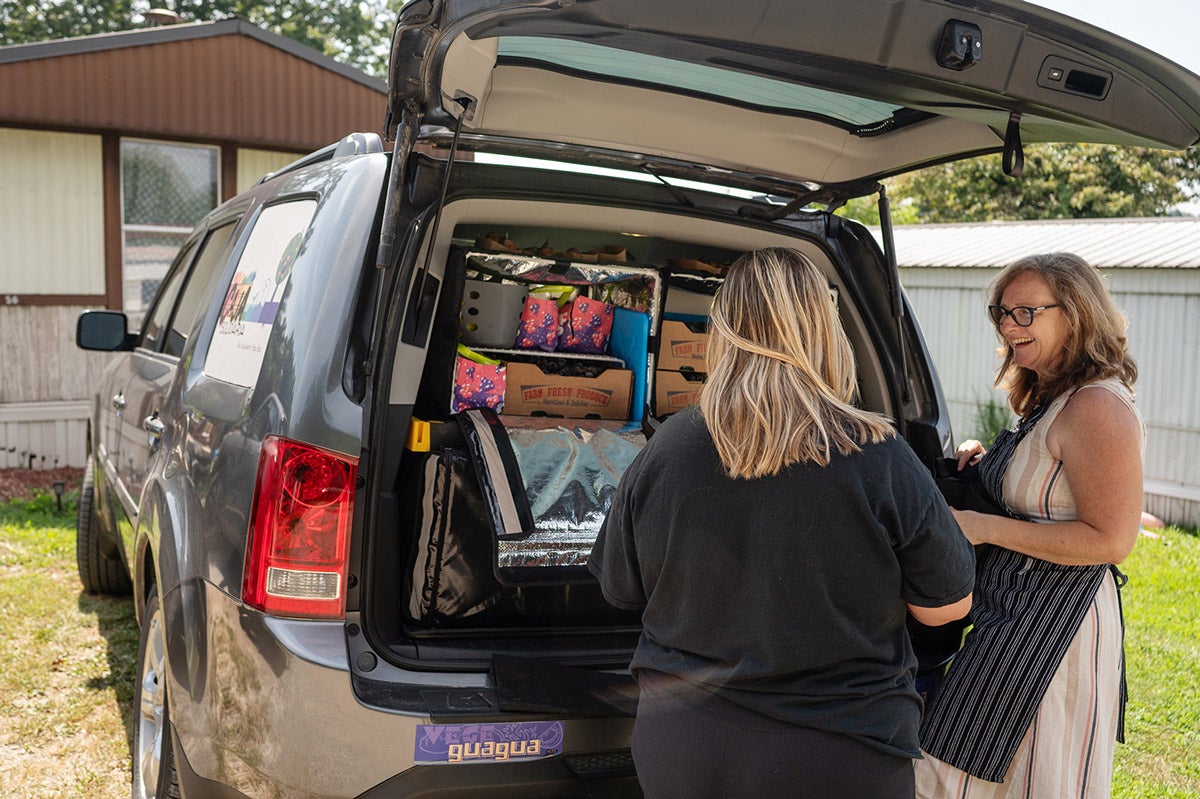 Boxes and baskets of fresh food are loaded for delivery from Caja Solidaria, a nonprofit dedicated to healthier diets and part of North Carolina Medicaid’s Healthy Opportunities Pilots.